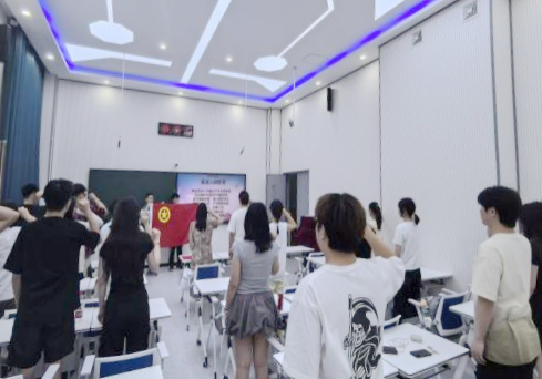 学生团委副书记李涵带领全体团员重温入团誓词。现场气氛庄重,铮铮誓言激荡初心,青春壮志再燃使命。全体团员青年以五四精神为炬,在民族复兴的壮阔航程中劈波斩浪,用奋斗坐标丈量新时代的信仰之路。