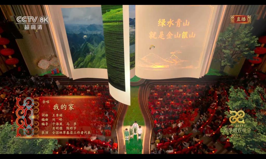 有一个合唱节目备受瞩目,是由40位来自基层一线的林草工作者,共唱歌曲《我的家》。这首歌由学院作曲系副教授刘峤编曲,以民谣歌曲《我的家》为载体,探索“中国式合唱新音色”的创作概念,吸取人民的音色特质和多地域音乐文化特点,打造出“声”入人心的自然和声。展现 20 年来对 “绿水青山就是金山银山” 理念的生动实践,铺展开一幅生态美、产业兴、百姓富的美丽中国新画卷。