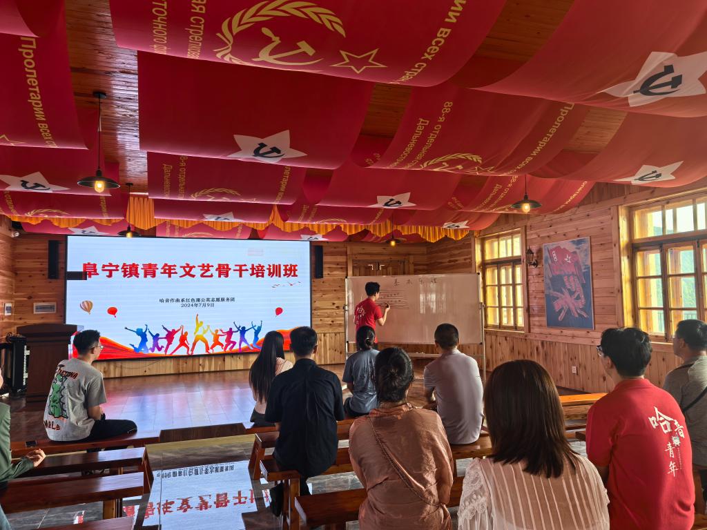11日下午,实践团在阜宁镇组织文艺青年培训,帮助青年文艺骨干学习基本乐理、电子琴、声乐及舞台表演技巧,丰富阜宁镇群众的精神文化生活,充分展现哈音青年学生的艺术才华和良好精神风貌。
