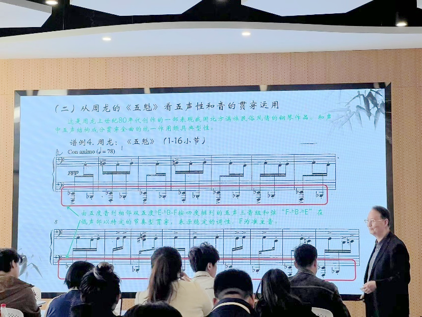 本次讲座使作曲系师生更加明确了中国特色和声理论的基本内涵和创作特征,强调五声性调式和声是中国特色和声理论中最具代表性的部分,使学生们深刻体会到只有民族的才是世界的,在音乐创作中始终要扎根民族,这样创作出来的作品才更具辨别性,真正地做到文化自信。