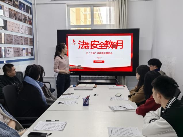 在“三防”进校园主题班会,辅导员老师带领同学们观看“防拐骗”“防性侵”“防电信诈骗”视频讲解,结合近年来校园安全问题相关案例,提醒同学们要提高自我保护意识,引导同学们树立关爱健康、珍爱生命、遵纪守法的观念;组织全体同学签署《不参与电信网络诈骗承诺书》,安装使用国家反诈中心APP;党总支书记及辅导员走访学生寝室进行安全检查,普及消防安全知识,对发现的安全隐患要求学生立行整改。