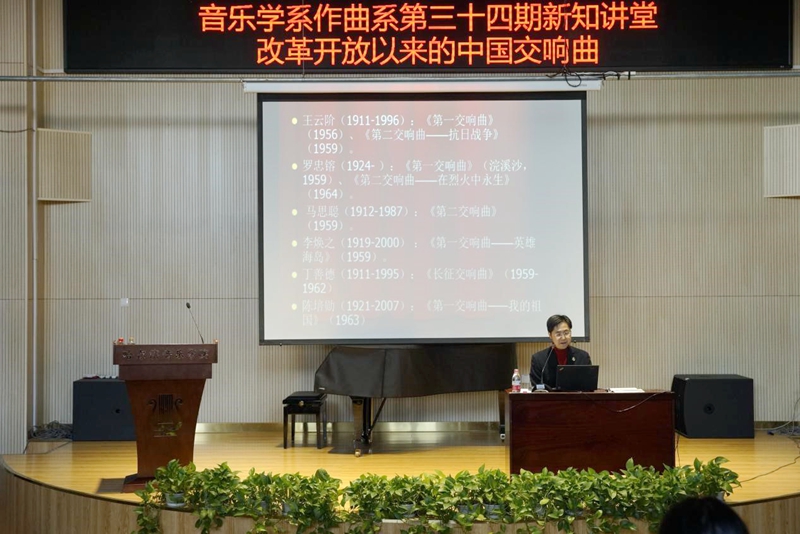 12月6日上午,上海音乐学院音乐学教授、博士生导师杨燕迪做客音乐学系作曲系第三十四期新知讲堂,在主楼第二演奏厅讲授《改革开放以来的中国交响曲》专题讲座,音乐学系、作曲系本科生、硕士研究生、博士研究生与部分教师参加讲座。