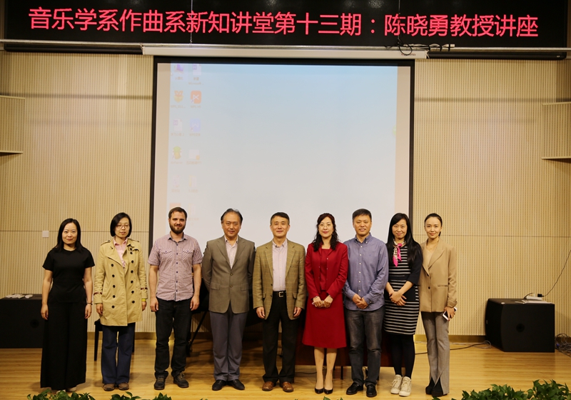 5月10日15:00, 德籍华人作曲家陈晓勇教授做客作曲系音乐学系新知讲堂,在哈尔滨音乐学院学术报告厅(主楼A220室)讲授“音乐与人−−从我对音乐信息传递与转换方式特征的研究谈我对声音与情感关系的思考”,讲座由作曲系负责人张磊教授主持,作曲系全体师生和音乐学系部分师生参加。