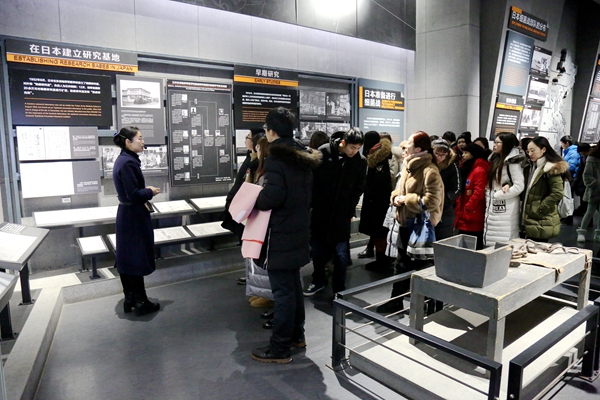 731部队罪证陈列馆位于哈尔滨市平房区新疆大街25号,陈列馆主要包括两大部分:罪证陈列馆和罪证遗址。同学们在讲解员的带领下参观了两层展厅,通过模型、图片、文字、实物等进一步了解了731部队对中国人民残暴的行为,认识了二战期间日军犯罪事实及战后贻害。讲解中大家对细菌实验印象深刻,据介绍, 731生产的细菌量是按照公斤和吨为单位计算的,如果全部投放出去,造成的传染伤亡和生态破坏对全人类将是毁灭性的。本展厅展示了日本侵略者把中国、苏联、朝鲜、蒙古战俘和平民当作标本实验,采用注射细菌法、埋入细菌法、灌菌法等,手段十分凶残,仅1939年至1945年期间,就有3000余名爱国志士、共产党人和无辜群众被残害。