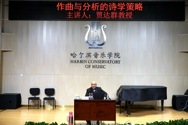 11月22日15:30,作曲系第十一期新知讲堂在哈尔滨音乐学院学术报告厅(主楼A117室)举行,此次讲堂邀请著名作曲家、理论家、上海音乐学院贾达群教授主讲,主题为“作曲与分析的诗学策略”,作曲系全体师生参加,讲座由作曲系负责人张磊教授主持。