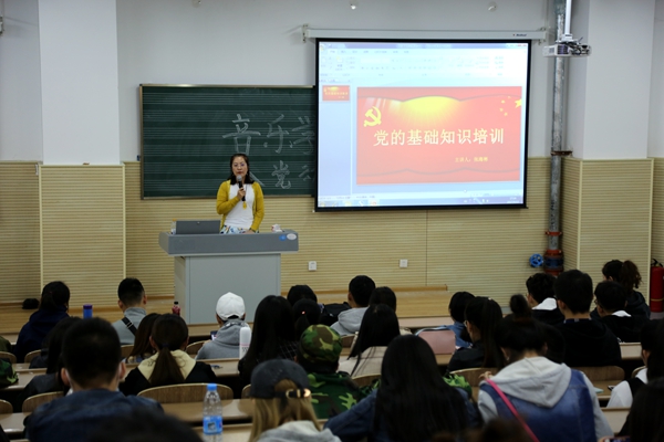 为使学生加深对中国共产党的认识,了解中国共产党的基础知识,树立正确的入党动机, 9月13日晚,音乐学系作曲系在主楼A117室召开党的基础知识培训大会,音乐学系作曲系党总支临时负责人张海彬主讲,辅导员孟美思及音乐学系作曲系全体本科生及部分研究生参加会议。